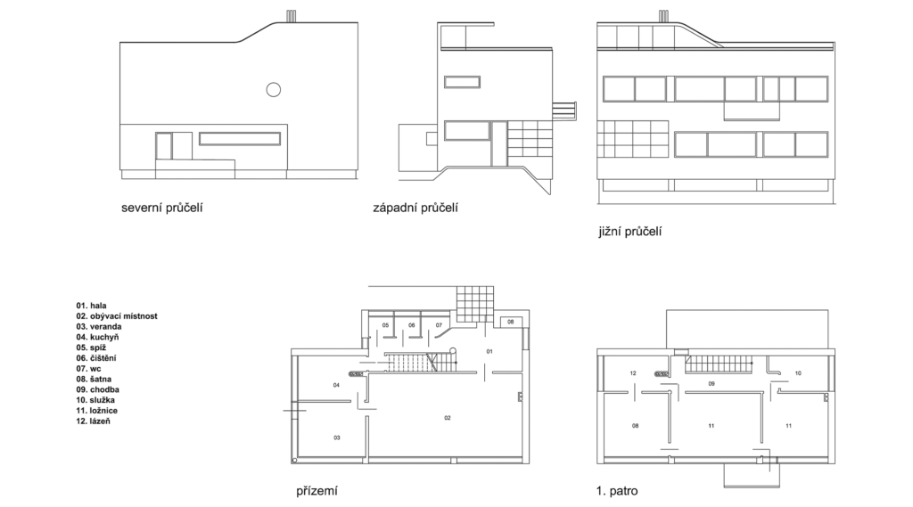 The house for Professor Bohumil Čeněk is the second construction by Ladislav Žák in Baba which was aimed at creating a standard small family house. However, he managed to create an exceptional villa with a front façade with a highly original appearance using a ship’s window. The architect was undoubtedly fascinated by Le Corbusier’s view of the house as a machine for living, which he enriched with “nautical shapes” inspired by the architect Hans Scharoun. Žák also designed an extension of the garage in the 1930s, and later, the architect Jíra expanded the sunroom with another glass-walled living space.