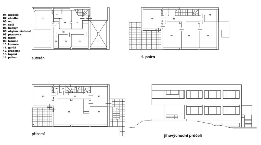 This third design of the medium-sized house in Baba, a villa for a section head at the Ministry of Education, Dr. Hugo Zaorálek, marked the peak of Ladislav Žák’s efforts to design a prototype of a house as an independent living unit of a collective house. The concept also included an area to provide care for the body and soul – the upstairs bathroom was fitted with gym equipment and directly connected to the sundeck. The direct connection of the large ground-floor living room with the garden was a very functionalist and unusual element, even compared to the other Baba houses.