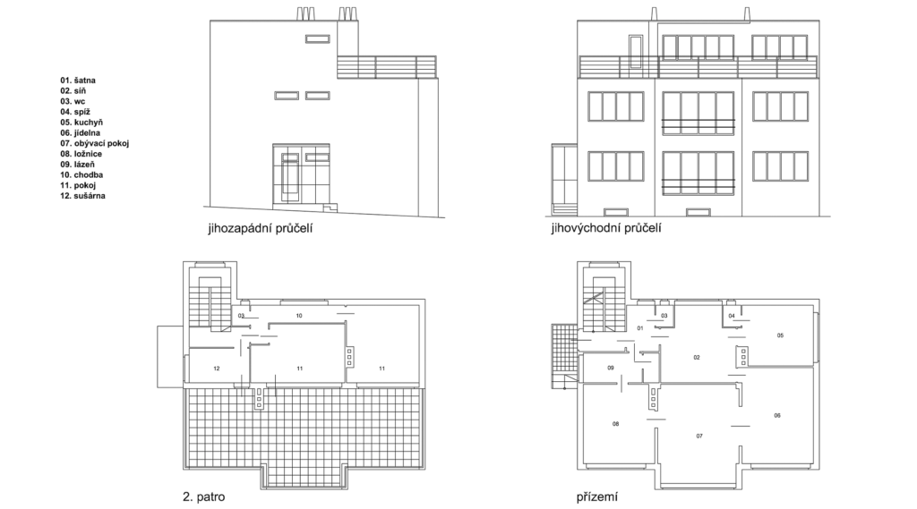Like Vojtěch Kerhart with the Řezáč House, Oldřich Starý also made his house design for Baba commissioned by Gustav Vaváček as a kind of economical Czech variation on the new objectivity. The house is characterised by its axiality and symmetry; the layout is repeated on both floors. The third floor is topped by a large sundeck at the expense of the living area.