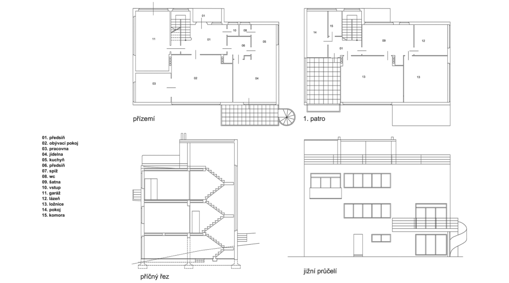 Hana Kučerová-Záveská, and her first design of two houses in Baba, was commissioned by Karel Balling. The villa clearly displays her vision of the individual living of middle-class families with children. She was a great advocate of practical living, with an emphasis on sanitariness and safety, including modern gadgets, such as gas and electric stoves which allowed women to work as efficiently as possible. The house was also equipped with a dumb waiter and home phone. The ground floor layout includes a study, living room and dining room connected to the garden by a glass wall and a staircase. The first floor, with the bedrooms, was equipped with a dressing room and a corner sunroom. The roof is designed to serve as a sundeck. Unfortunately, in her short life, the talented architect and designer would only finish two house designs – the Balling House and the Suk House.