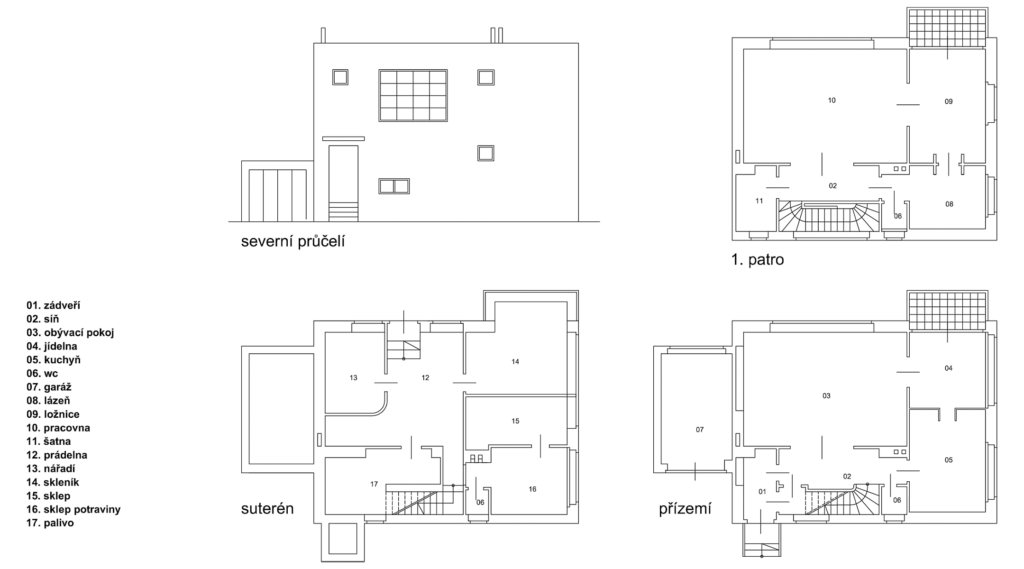 Rodinný dům pro poslance Národního sněmu Antonína Uhlíře byl koncipován jako tradiční půdorys dvoutraktového uspořádání, ale neobyčejný z něj udělal zkosený skleník v přízemí pokračující v patrech jako prosklené verandy. K domu byla v roce 1936 podle návrhu Ladislava Žáka doplněna předsazená terasa obepínající dům i z východní části a navazující na garáž.