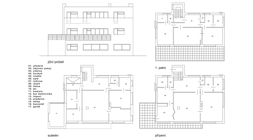 Pavel Janák navrhl pro svého přítele, velkého podporovatele funkcionalismu, Karla Dovolila a jeho rodiče dvougenerační rodinný dům. Skvěle využil spád terénu k umístění zázemí domu, investorovy kanceláře a malého bytu pro domovníka. Střecha oddělené garáže je zároveň terasou navazující na balkon pokoje. Tuto terasu pomocí ocelového schodiště propojil se zahradou. Uliční průčelí má na rozdíl od ostatních domů okna.