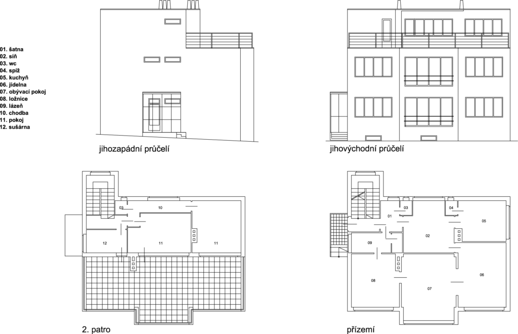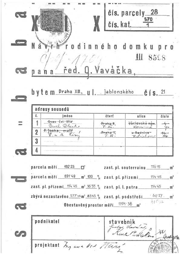 1932 rodinný dům Išky a Ladislava Sutnarových, rodinný dům Františka Heřmana, rodinný dům Cyrila Boudy a rodinný dům Karly a Gustava Vaváčkových, Baba, Praha-Dejvice